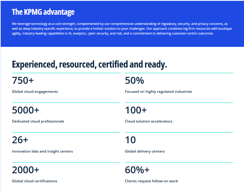 Look at this page for inspiration: https://kpmg.com/us/en/capabilities-services/technology/cloud.html